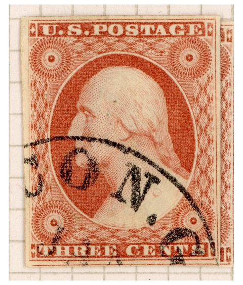 Click an image to enlarge it. Then click to see it full-screen. Click the image again for full size 1200 dpi. At this largest size, use your mouse to "move it around" to focus on areas of interest. If you want to download the image to your computer, right-click on the image. Clicking outside the stamp border (or on the "X") returns you back to the starting point.