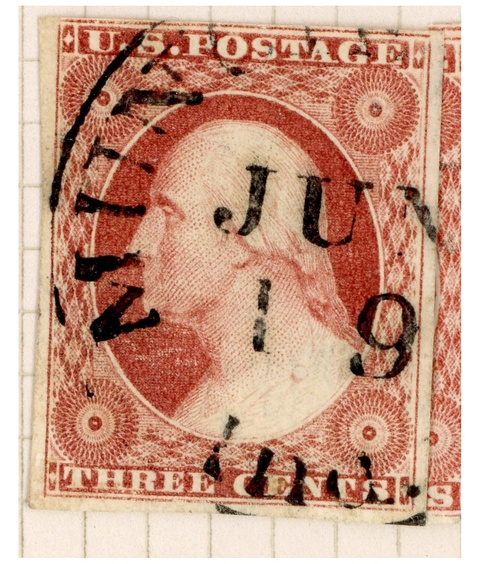 Click an image to enlarge it. Then click to see it full-screen. Click the image again for full size 1200 dpi. At this largest size, use your mouse to "move it around" to focus on areas of interest. If you want to download the image to your computer, right-click on the image. Clicking outside the stamp border (or on the "X") returns you back to the starting point.