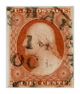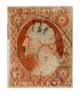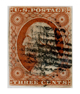 Plate 1E was printing stamps several weeks before the first stamps were issued to the public on July 1, 1851. Dr. Chase says that the first 300,000 stamps from this plate were delivered by printing contractors to the government on June 21, 1851, and that all other deliveries prior to about the middle of July, 1851, came from Plate 1E. Dr. Chase estimates that Plate 1E was used until about the end of the first week of July, 1851, when it was softened, and reentered, thus resulting in the intermediate state, Plate 1i. Approximately 2,267,800 stamps (11,339 impressions) were printed from Plate 1E. All of the stamps on Plate 1E are Orange Brown. The plate showed no wear, so impressions are clear; however, they are faint. Refer to Dr. Chase's book The 3¢ Stamp of the United States 1851-1857 Issue for the full story of Plate 1E.